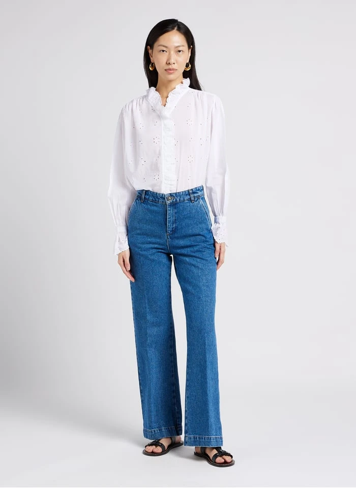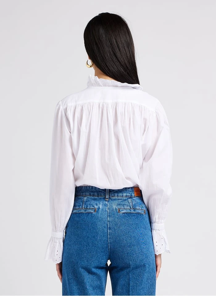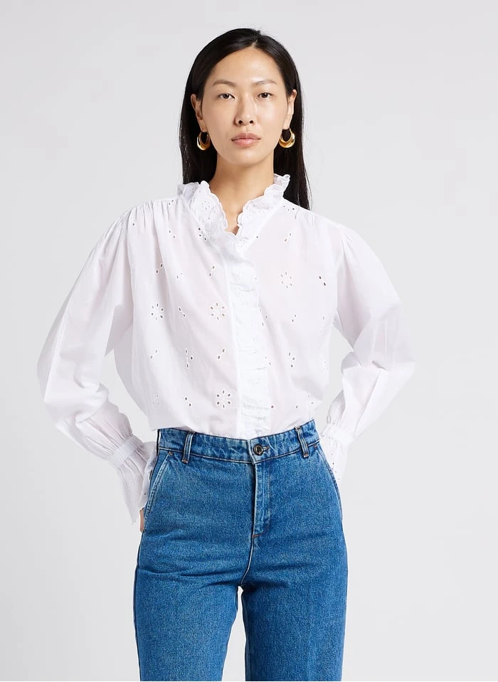 Baumwollbluse mit viktorianischem Kragen und Lochstickereien by Soeur fur Damen.