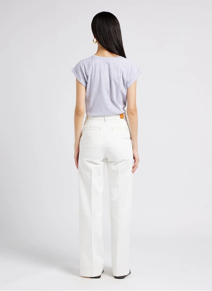 Dieses Modell wird prasentiert mit: Umhängetasche aus Vachetteleder by SOEUR, Bootcut Jeans aus Baumwolle by SOEUR, Flache Leder-Mules by SOEUR
